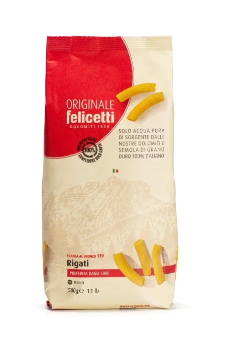 La selección de la sémola de trigo duro es meticulosa, asegurando que solo los mejores granos lleguen a tu plato. En cada Rigati Semola Pastificio 500gr, se encuentra el compromiso con la perfección. Pastificio Felicetti, con su legado de pasión y precisión, garantiza una experiencia culinaria sin igual.